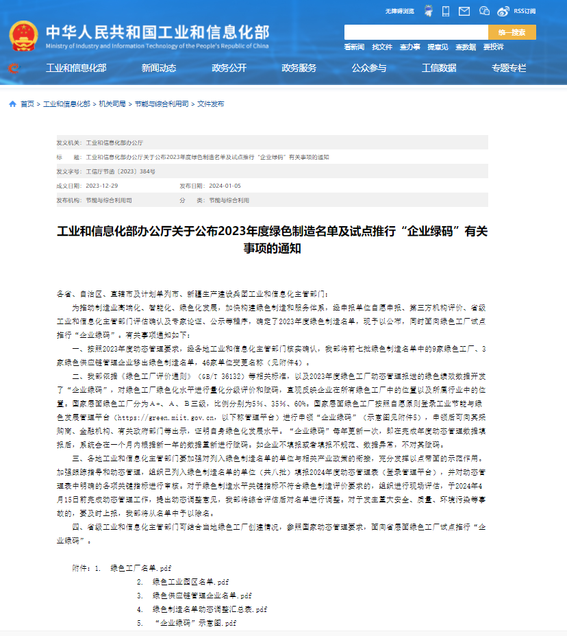 2024年1月5日,工信部发布《关于公布2023年度绿色制造名单的通知》,新疆征途国际科技股份有限公司喜获“绿色供应链管理企业”称号。