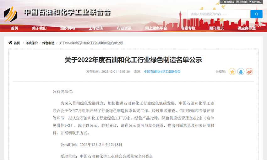2022年度石油和化工行业绿色制造体系认定工作由中国石油和化学工业联合会组织开展,旨在贯彻落实“中国制造2025”战略,经过企业申报、形式审查、信用查询和专家评审等环节,本年度认定石油和化工行业绿色工厂30家,绿色产品72种,绿色供应链管理企业2家。